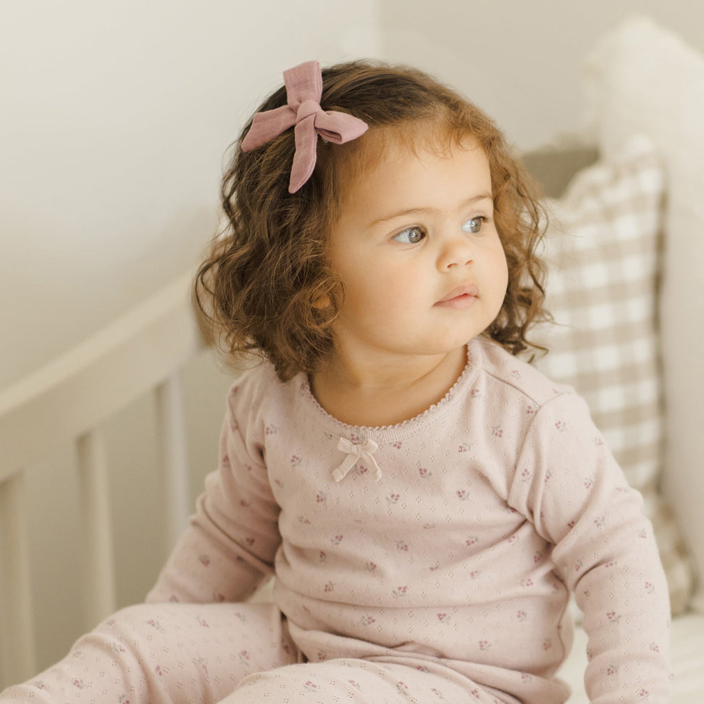 Soft cotton bow clips that are sweet, simple, and perfect for your little gals.