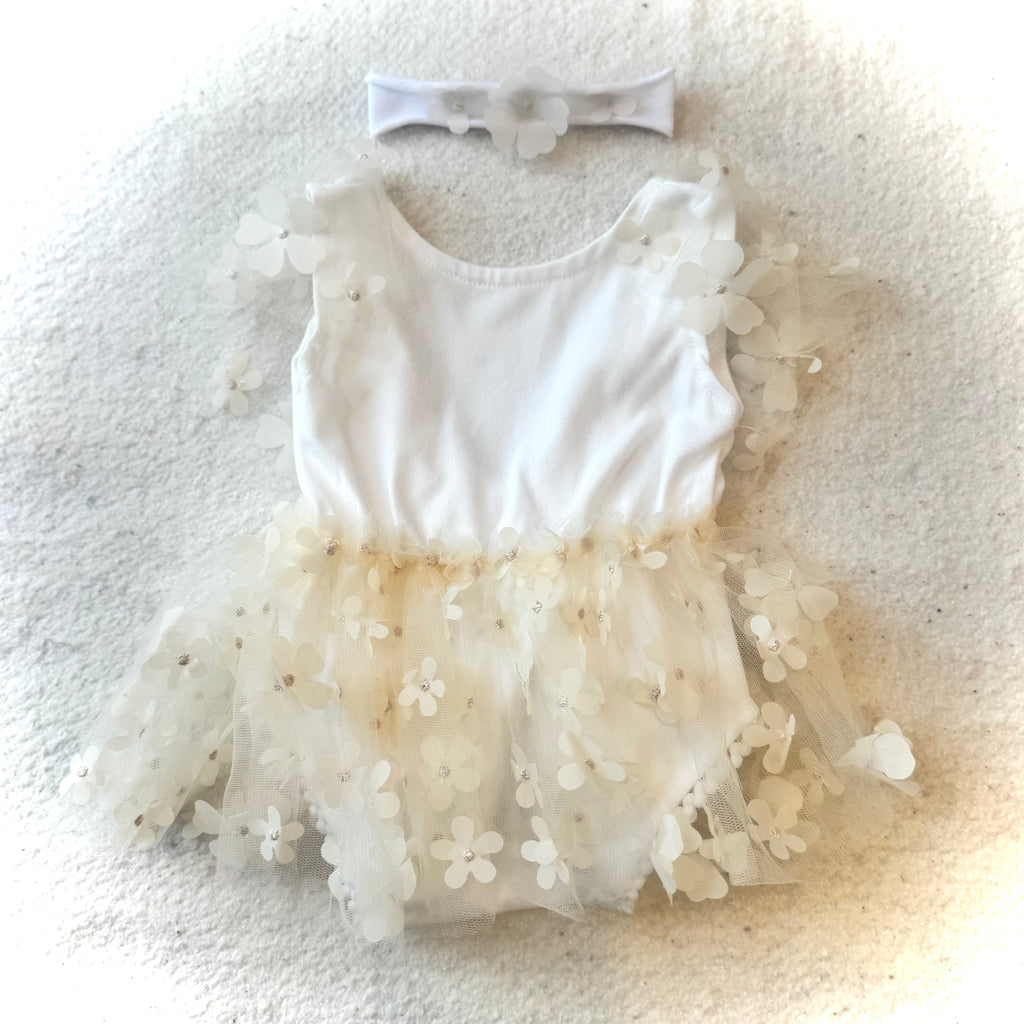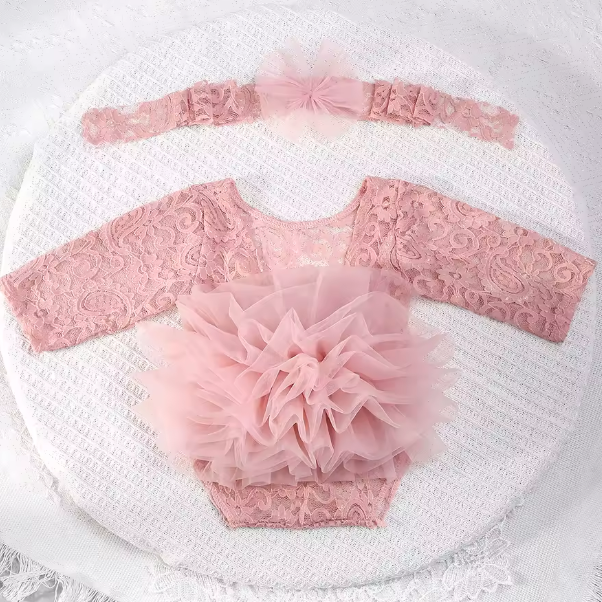 Ruffle & Lace Romper with Headband