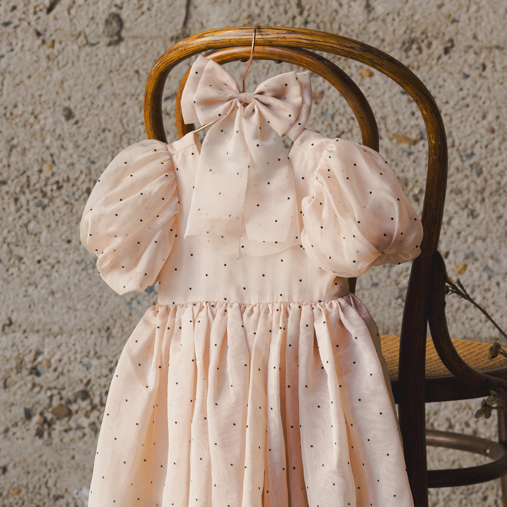 Featuring the 'flocked dot' print on an 'antique' hue.