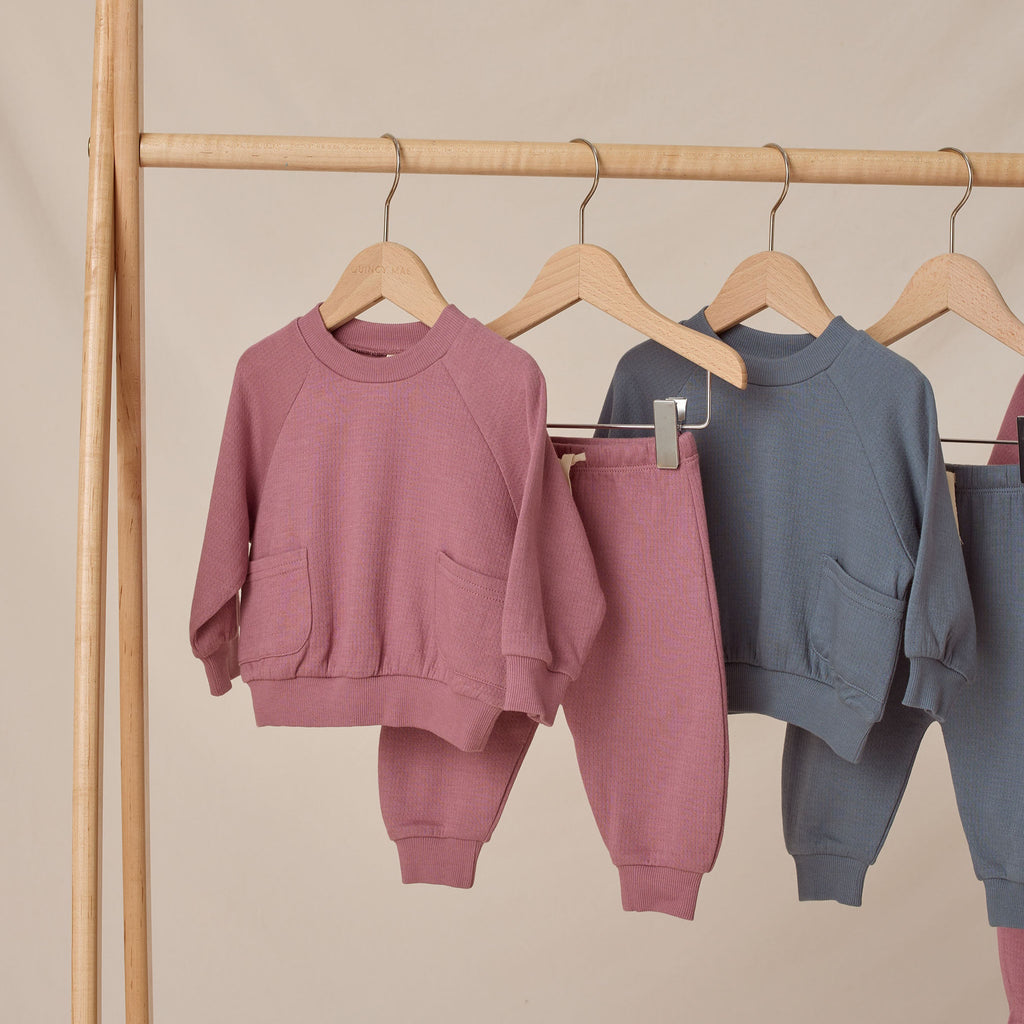 Made from soft pointelle knit, these cozy sweatpants feature an elastic waistband and functional drawstring for a comfy fit. Pair with the Mulberry Pocket Sweatshirt for a perfectly coordinated look.