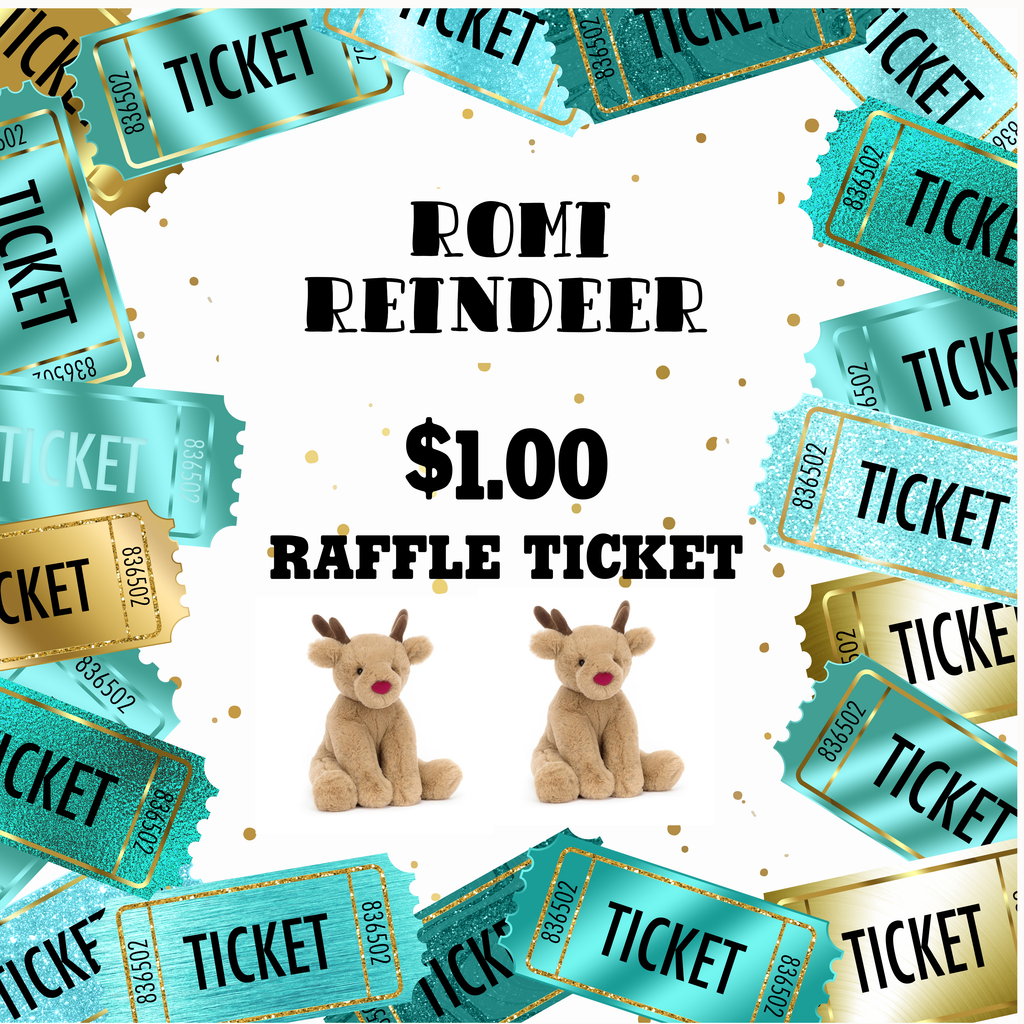 Buy a 1.00 raffle ticket and enter to win a brand new a Romi Reindeer We have TWO that we are raffling off. So your chances are DOUBLE. Wow!!!! How many raffles you buy, we will determine how many times your name is put in the drawing. The drawing will be live on December 5th @pipsqueakstc. Out of town customers are more than welcome to participate and we will ship for free