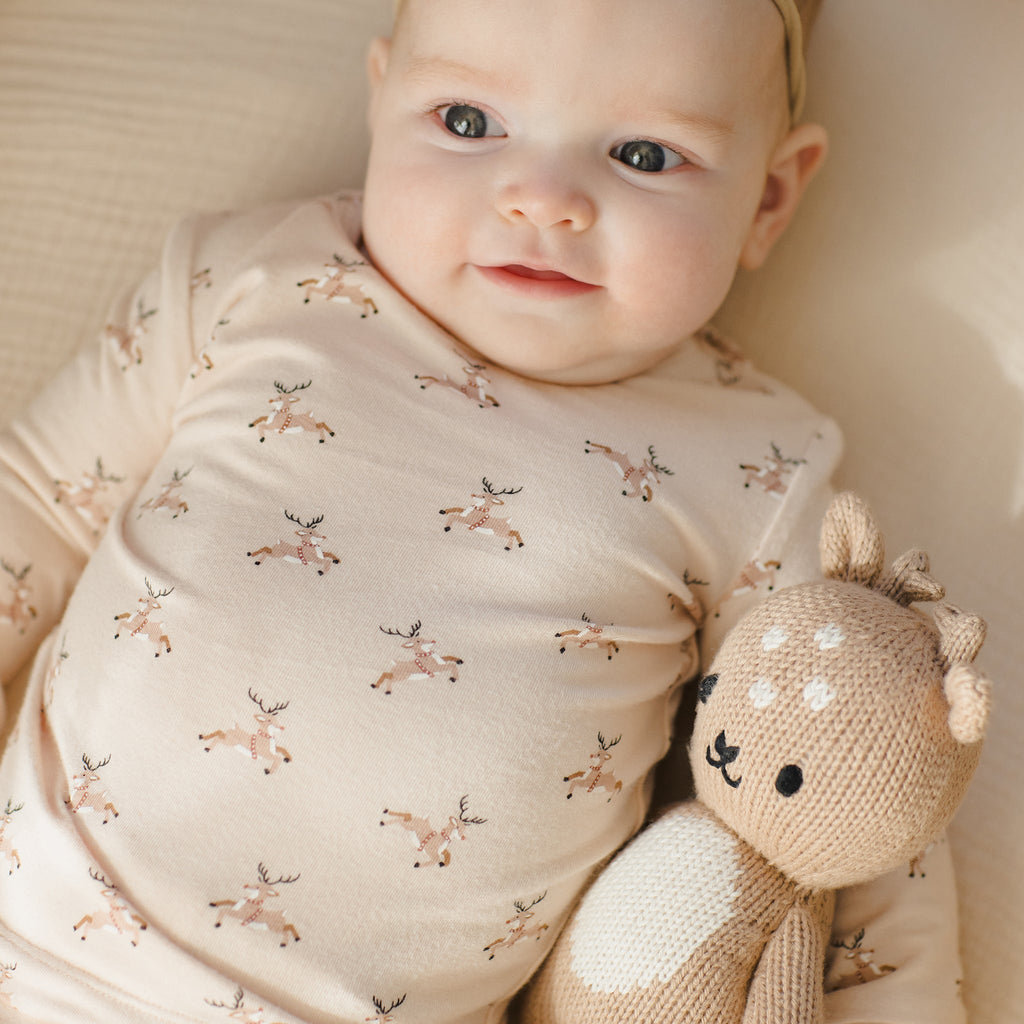 Match baby sister in the Reindeer Bamboo Zip Footie!